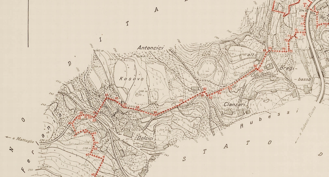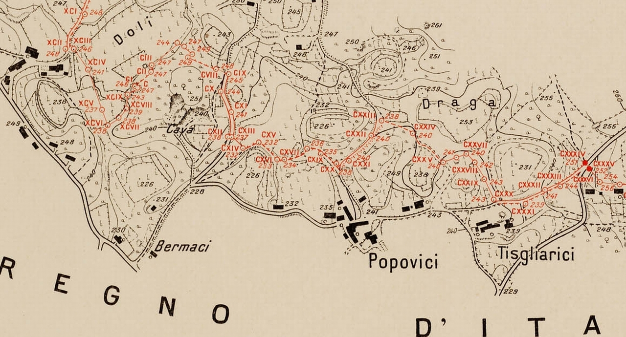 Duž cele granice su se postavjali stupići. Talijani su ih zvali cippo.